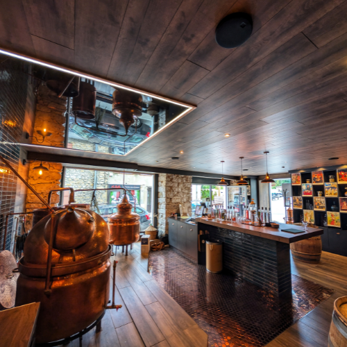 Dans un bâtiment chargé d’histoire, entièrement rénové par Marc Bourgeois, la distillerie élabore des spiritueux d’exception avec exigence et précision. Récompensée par une médaille d’or aux World Drinks Awards 2025 pour Luxure, son absinthe verte emblématique, la maison propose également une gamme d’absinthes blanches aux profils aromatiques singuliers. Elle développe aussi des liqueurs de caractère et un gin London Dry, premier gin distillé à Pontarlier. De la sélection des plantes à la distillation en alambics traditionnels, jusqu’au design des bouteilles et à la création des étiquettes, tout est conçu et réalisé de A à Z à la distillerie. Chaque bouteille hexagonale incarne ainsi un savoir-faire artisanal français, une identité forte et un profond attachement au terroir pontissalien.